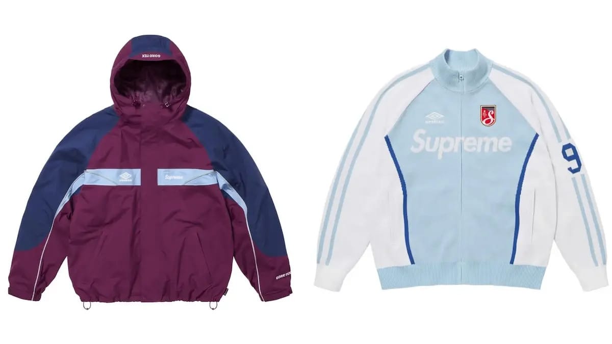 Supreme’s SS25 collection collab with Umbro is a fashion-first football fan’s dream. Gore-Tex tracksuit? Tick. Knitted zip-up? Tick. Jersey and shorts combos? Tick. All with a massive dose of classic Umbro? Big tick. Available now