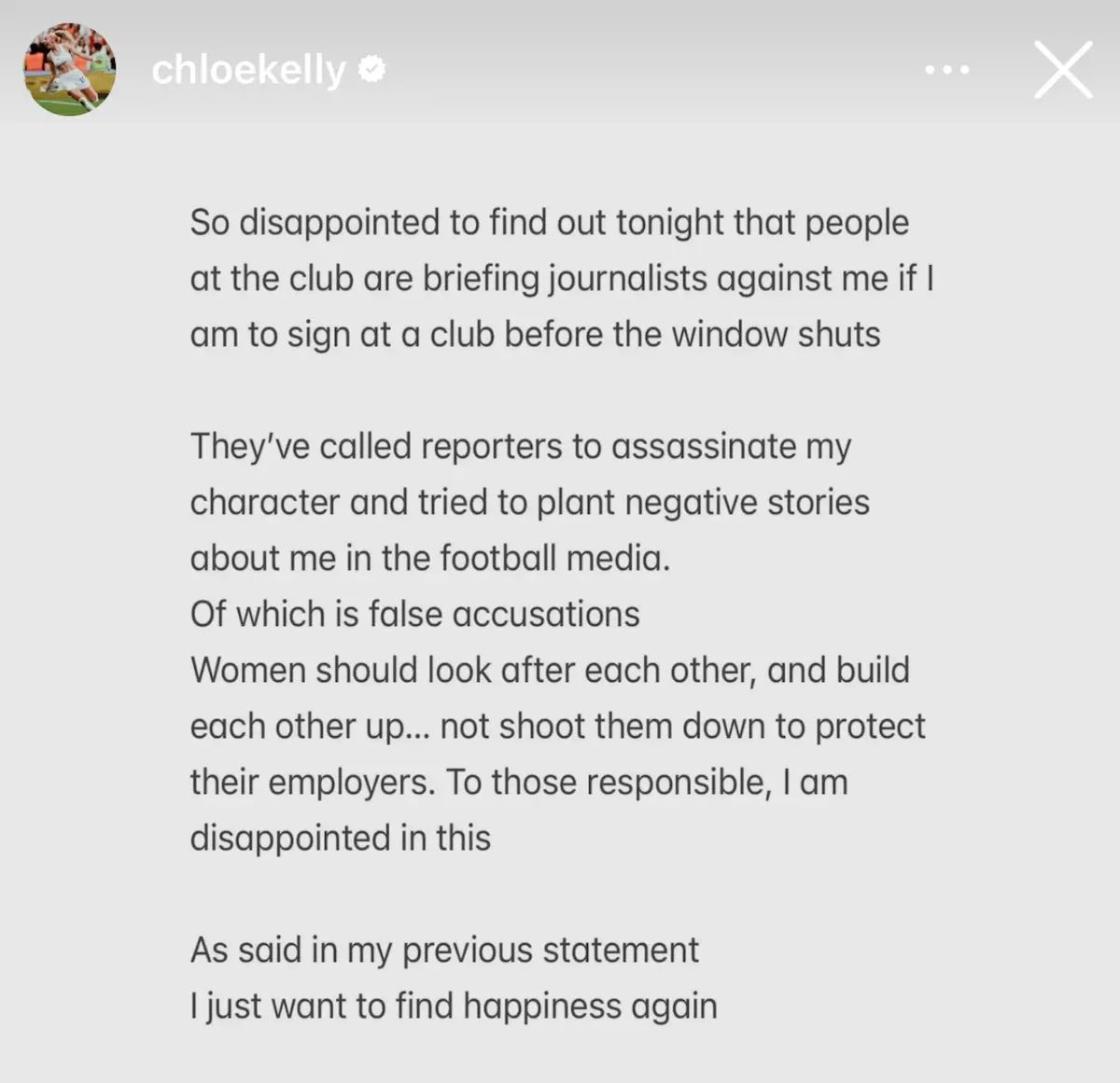 It’s no surprise that Chloe Kelly started ramping up the pressure for a move in the January window, but it was perhaps the way the pressure came that was more of a shock.