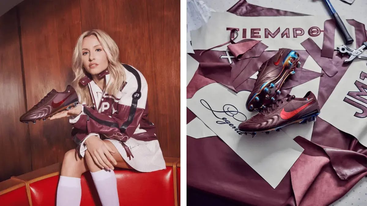 Antonia Bronze has been at it again, creating this custom Arsenal Tiempo inspired faux leather bomber jacket for Leah Williamson, in partnership with ProDirect Soccer. The collab coincides with the launch of Nike’s Tiempo Legend X ‘Luxe’.
