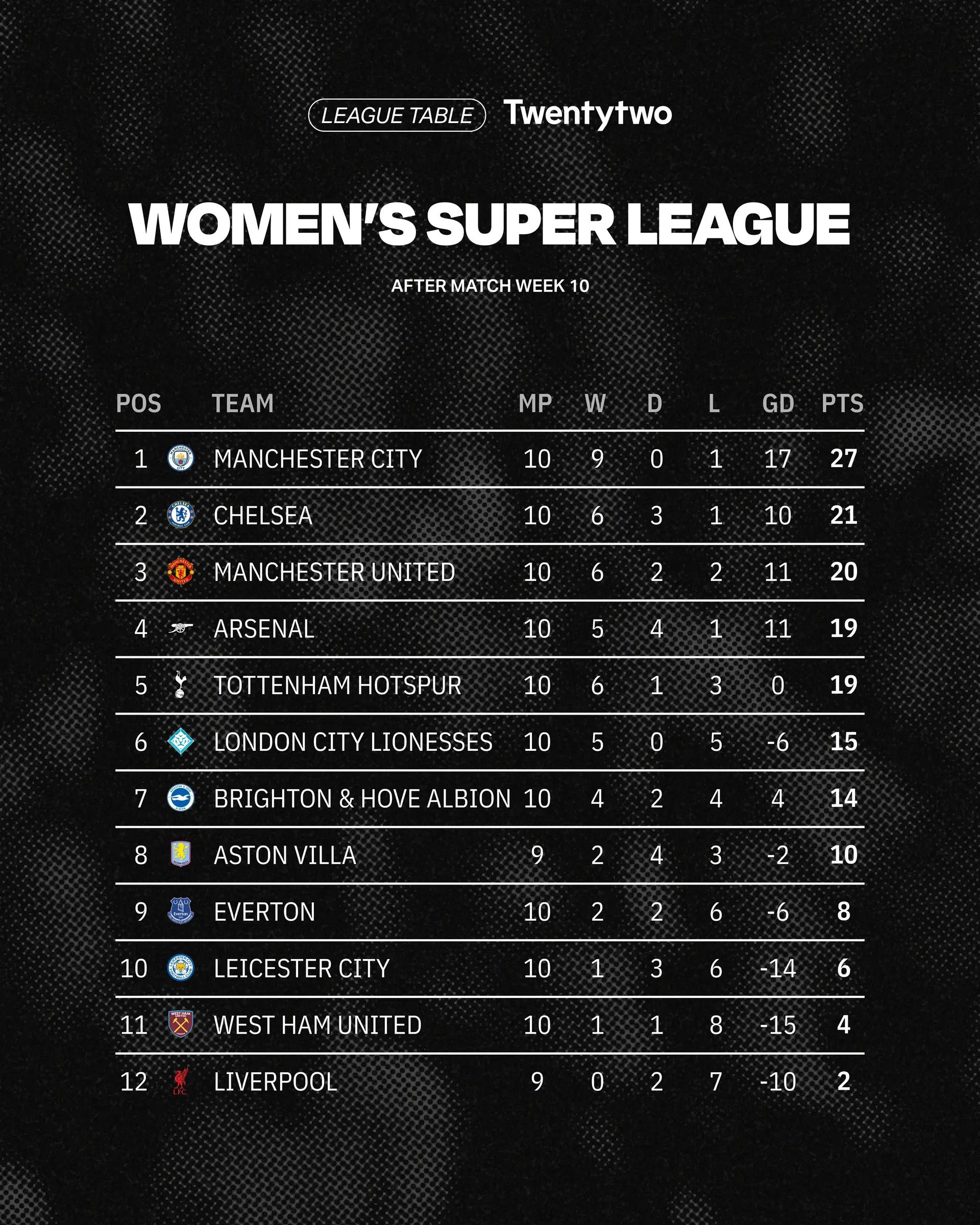 RESULTS: WSL MATCHDAY 10